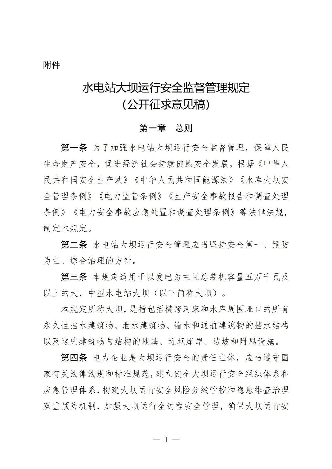 附件:水电站大坝运行安全监督管理规定(公开征求意见稿)