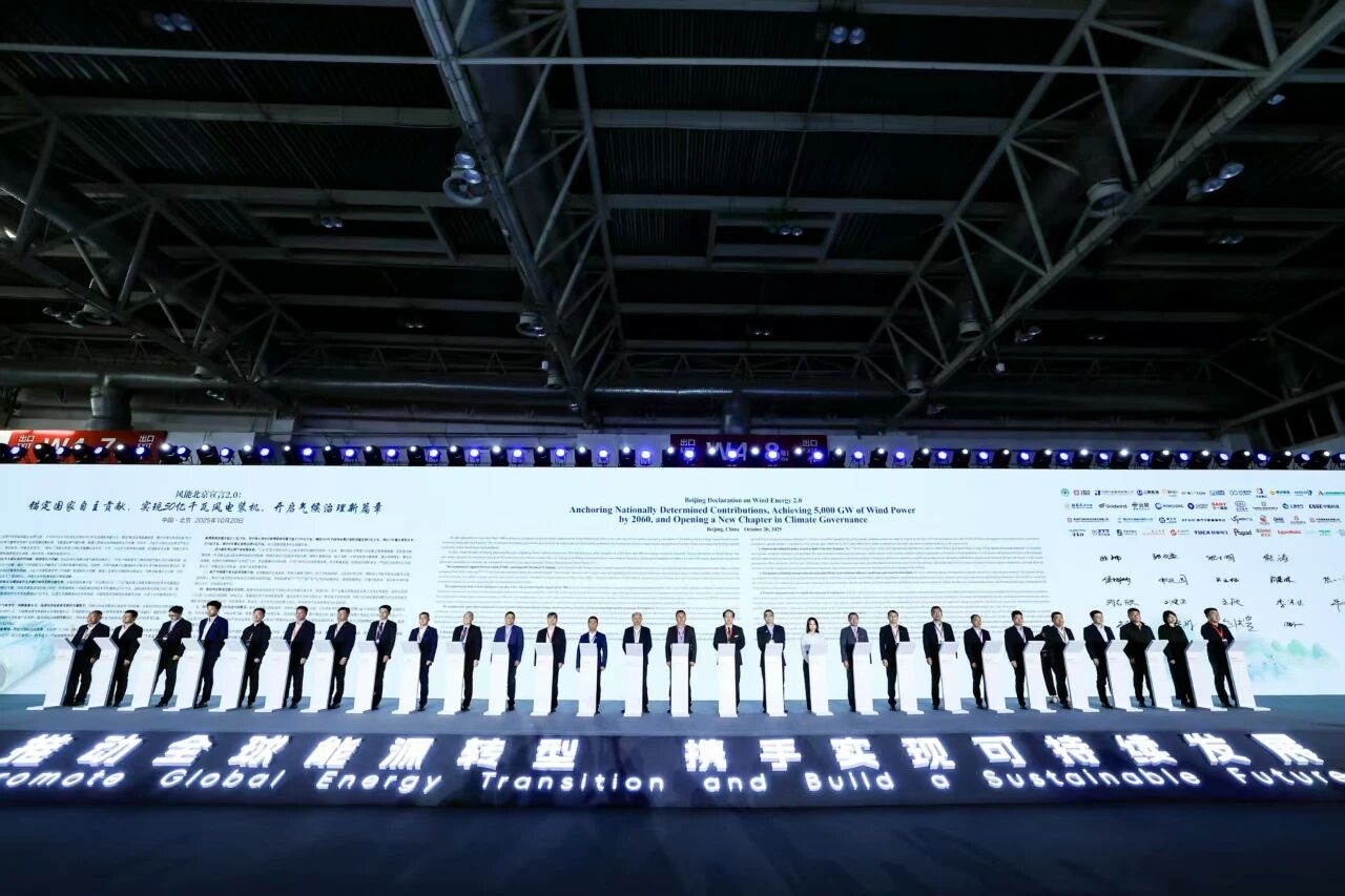 我们,来自全球1000多家风能企业的代表,于10月20日至22日在北京举行2025年北京国际风能大会,围绕“推动全球能源转型,携手实现可特续发展”的主题,致力于汇聚全球力量推动风电产业高质量均衡发展,为推进全球气候治理、构建人类命运共同体提供有力支撑。2020年,习近平主席向全世界庄严宜示碳达峰碳中和目标,我们发布《风能北京宣言》,提出了风能人的奋斗目标并超额完成任务;今年,习近平主席宜布中国新一轮国家自主贡献,风能人作为推动全球绿色可持续发展的坚定行动派,再次发布《风能北京宜言2.0》。