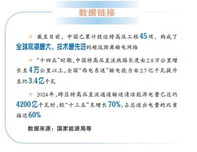 ——2024年,跨区特高压直流通道输送清洁能源电量占总送出电量的比重接近60%